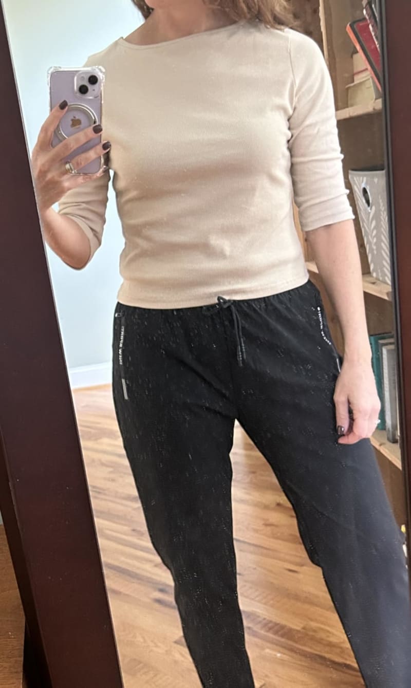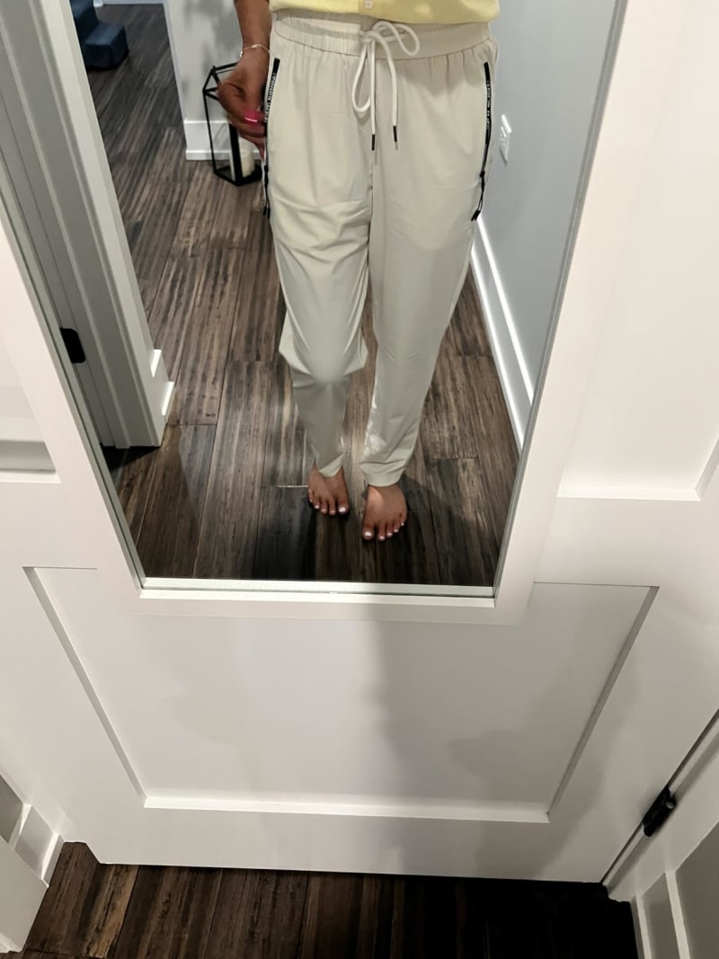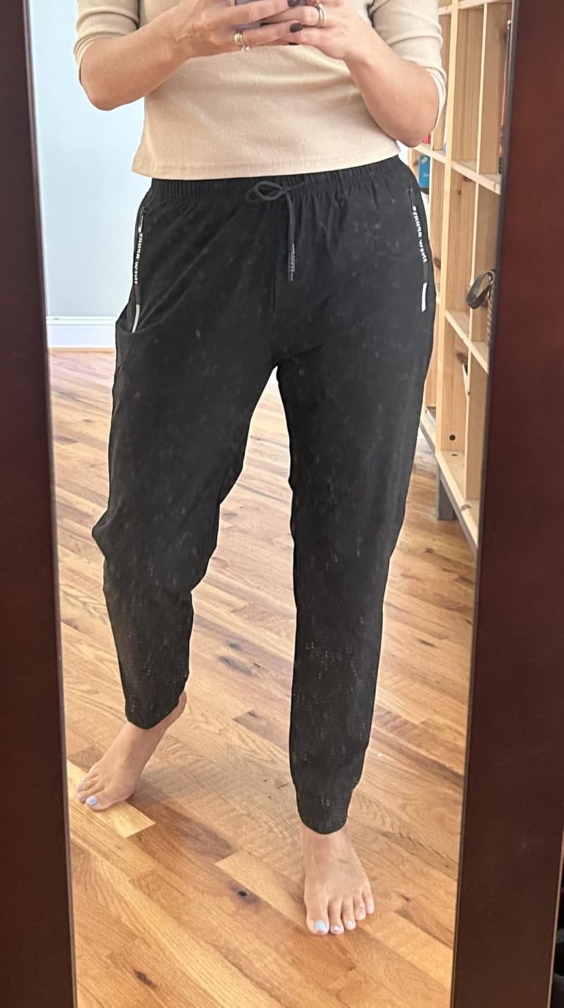 Love the jogger style! They're so versatile. I can dress them up with a cute top or keep it casual for the gym. Highly recommend!
